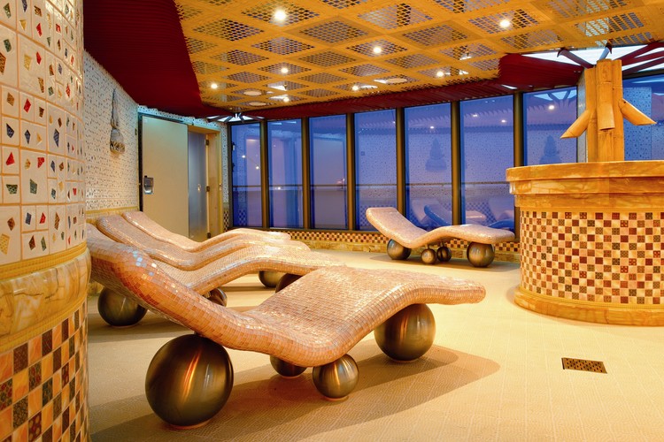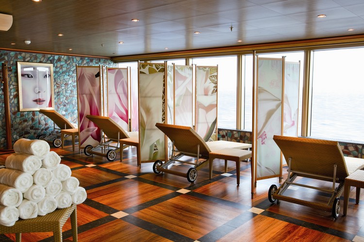 3500 qm Wellnessbereich „Samsara Spa“ über zwei Decks mit u.a. Thalassotherapie-Becken, verschiedene Anwendungsräume, Sauna, Türkisches Dampfbad, Schönheits- und Friseursalon, Kasino und Diskothek, Riesen-Kinoleinwand auf dem Pooldeck, Grand-Prix-Rennwagen-Simulator, Internet-Point und WLAN auf Deck und in den Kabinen, Bibliothek, Fotogalerie, Kunstgalerie, Kartenspielzimmer, Wäscherei, Squok-Club.