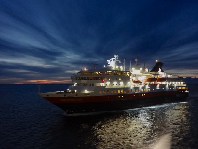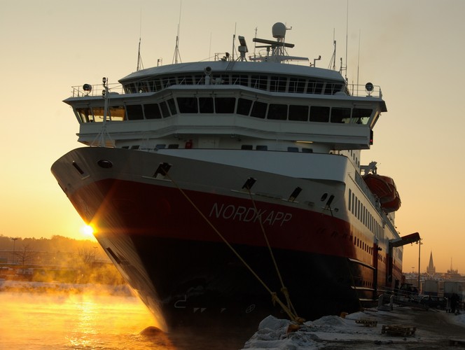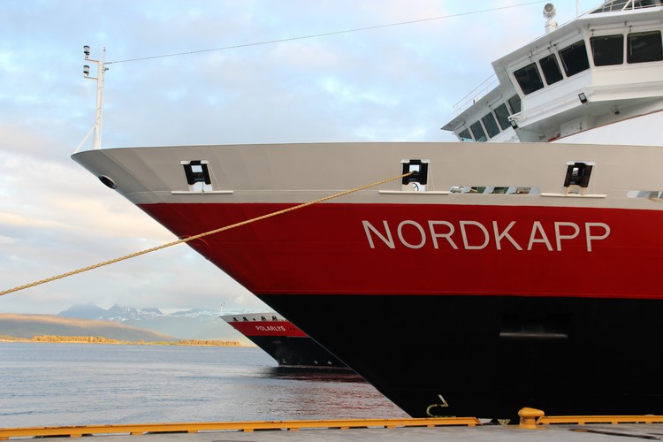 MS Nordkapp wurde nach der majestätischen Felsformation am äußersten Vorposten des europäischen Festlandes (71° nörd liche Breite) benannt. Das Schieferplateau ist eins der beliebtesten Hurtigruten Ausflugsziele und bereits seit 1553, als Richard Chancellor ihm auf der Suche nach der Nordostpassage seinen Namen gab, magischer Anziehungspunkt für viele Forscher. An Bord der Nordkapp begegnet man über all den Kunstwerken des bekannten norwegischen Künstlers Karl Erik Harr. Die klassisch-moderne Ausstattung der 1990er-Jahre wurde bei einer Modernisierung mit Mini-Suiten und Whirlpools ergänzt. Baujahr des Schiffes ist 1996, Taufpatin war Königin Sonja von Norwegen.