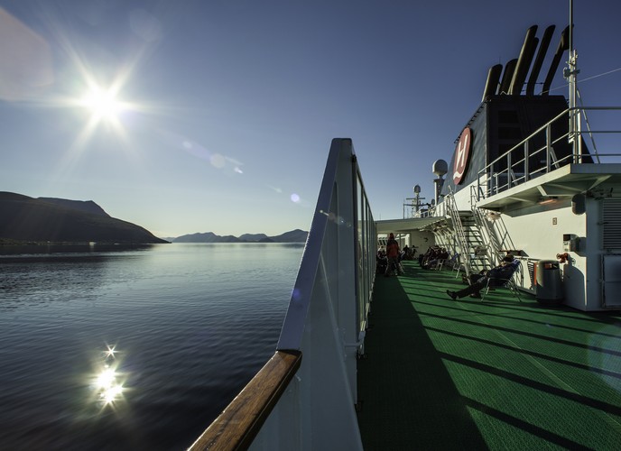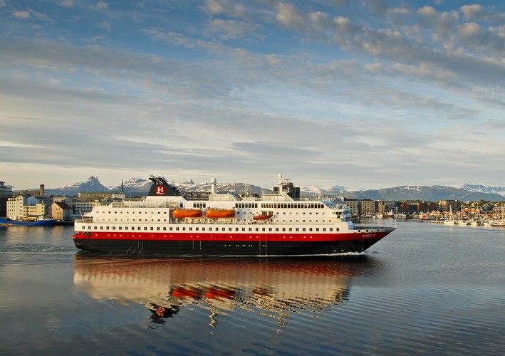 Namensgeber der Nordlys ist eine der spektakulärsten Himmelserscheinungen der Welt: das Nordlicht. Es taucht vorwiegend von Oktober bis März auf und erscheint in Form von grün und zuweilen auch rot flammenden Schleiern, die sich von Bord eines Hurtigruten Schiffs aus besonders gut beobachten lassen. Es liegt auf der Hand, dass Kunst, Dekor und Farben der 1994 gebauten Nordlys vom Nordlicht (Aurora borealis) inspiriert sind. Mit dem hellen und erlesenen Interieur haben norwegische Künstler ein einzigartiges und individuelles Ambiente geschaffen; die Gesellschaftsräume laden mit maritimer Eleganz und zahlreichen Salons und Liegesesseln zu entspannten Stunden ein.