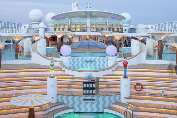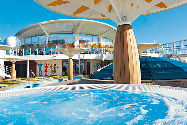 Schon allein das ausfahrbare Glasdach ist ein Genuß. Sonnen und Baden – die neuen AIDA Schiffe bieten eine Sonnendeckslandschaft über drei Decks mit drei Pools und vier Jaccuzzis, einer musikfreien Zone, einem FKK Deck, und einer großen Bühne für Lasershows und Poolpartys und all das mit einer Verbindung zum Sportsdeck und zum Wellnessbereich.