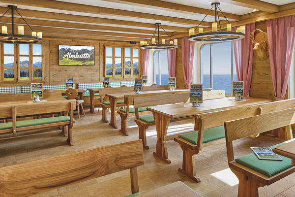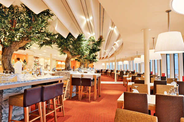AIDAbella: eine neue Generation von AIDA Clubschiffen. Freuen Sie sich auf noch mehr Fläche für Entspannung, Aktivität und Unterhaltung. Lassen Sie sich verzaubern von vielen großen und kleinen Details. Aufregend neu und einzigartig ist das Raumkonzept des Theatriums – das pulsierende Herz des Schiffes. Hier verschmelzen Theater, Bars und Marktplatz zu einem einzigartigen Raumerlebnis auf drei Decks und auf über 3.000 Quadratmetern. Soviel Platz wie noch nie für Spa & Sports: Auf über 2.300 Quadratmetern werden Körper und Seele aufs Schönste verwöhnt. Der besondere Ruhepunkt ist die Wellness Oase – ein Paradies der Entspannung und Erholung. Sportbegeisterte werden auf Deck 11 fündig. Für Outdoor Sportaktivitäten steht der Sport Court bereit, mit Golfabschlagplätzen, Volleyballfeld, Squashplatz, Kletterwand und Joggingparcours. Ein separater Eventsportplatz ist für Turniere eingerichtet. Sonnen und Baden – die neuen AIDA Schiffe bieten eine Sonnendeckslandschaft ( 6400 qm ) über drei Decks mit drei Pools und vier Jaccuzzis, einer musikfreien Zone, einem FKK Deck, und einer großen Bühne für Lasershows und Poolpartys und all das mit einer Verbindung zum Sportsdeck und zum Wellnessbereich. Für die kleinen Passagiere steht ein eigener Bereich mit Pool und separatem Sonnendeck zur Verfügung – sowohl außen als auch innen noch größer und vielfältiger als bisher. Für den Gaumen der Gäste werden neue Restaurant- und Foodkonzepte ( Restaurantfläche 3950 qm ) verwirklicht. Ob relaxen oder schlemmen, Workout oder Entertainment – Sie sind der Mittelpunkt des AIDA Urlaubs. Genießen Sie die großzügige Gestaltung für noch mehr Vielfalt, pulsierendes Leben, Begegnung und Abwechslung.