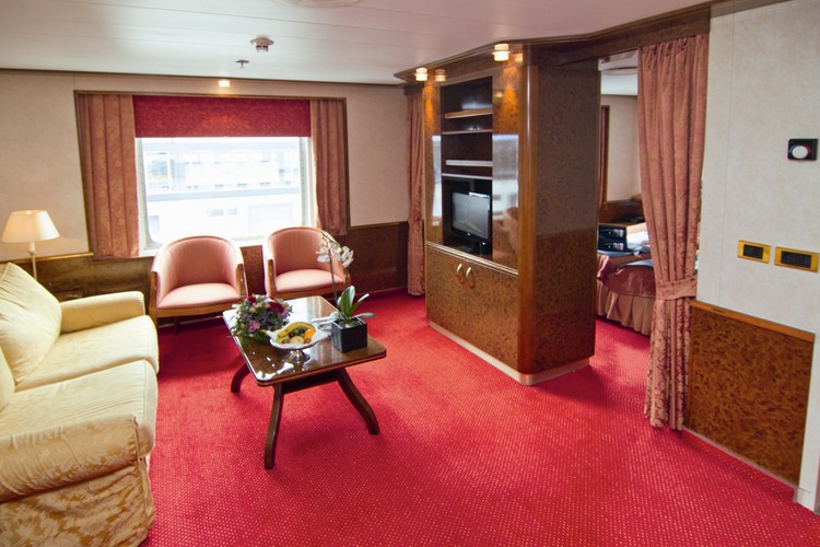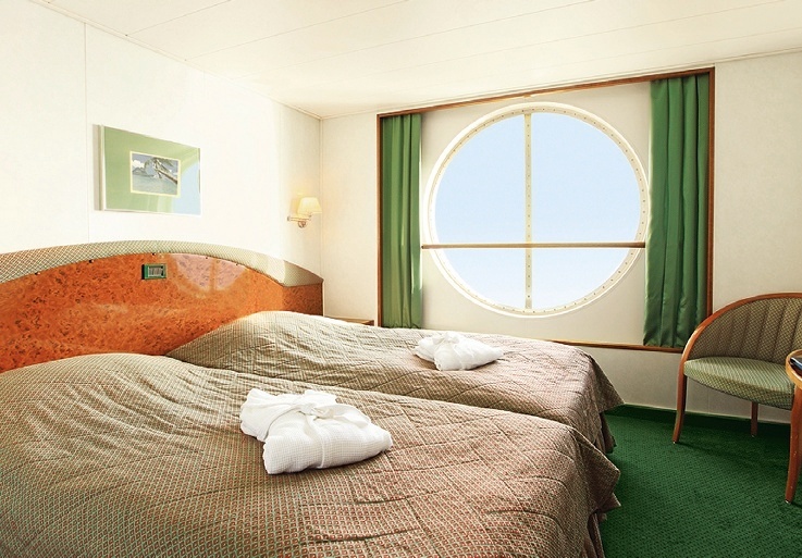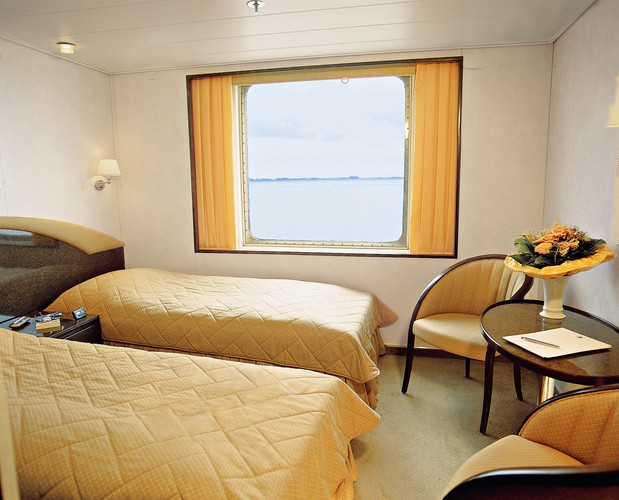 Ihre Kabinen: 134 Außenkabinen (ca. 15 m²), 63 Innenkabinen (ca. 13 m²) und 8 Suiten (ca. 31,5 m²). Ausstattung: Zwei Einzelbetten, Betten zusammenstellbar (nicht möglich in Innenkabinen, behindertengerechten Kabinen, Kabinen der Kat. 7 und Kabine 305 und 306), Duschbad mit WC, Bademantel und Fön, Kleiderschrank, Klimaanlage, Minibar, Safe, Telefon, Farb-TV für bordeigene Videokanäle, Vorauskamera, Außenkabinen mit Sitzgruppe, Innenkabinen mit Frisier-Schreibtisch-Kombination. Kabinen auf Deck 1 und alle Vorschiffskabinen mit Bullauge, alle anderen mit Panoramafenster, Suite 405 und 406 mit Veranda. Alle Kabinen sind Nichtraucherkabinen. Bei den Kabinen auf Deck 1 und 2 kann es zu Beeinträchtigungen durch Motorengeräusche kommen.