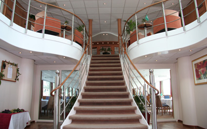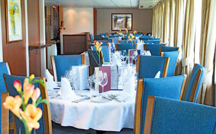Bordeinrichtung: Panorama-Restaurant, Panorama-Salon mit Bar, Bibliothek, Sonnendeck mit Sonnensegel, Liegestühlen, Stühlen und Tischen. Erste Hilfe: Ein Arzt ist an Land kurzfristig erreichbar. Restaurant / Küche: Im großzügigen Panorama-Restaurant finden alle Gäste zu einer Tischzeit Platz. Lassen Sie sich vom freundlichen Personal verwöhnen. Auf dem Speiseplan stehen internationale Spezialitäten ebenso wie typische Gerichte aus der Küche der Länder entlang der Reiseroute. Bordprogramm: Themenabende, Quizveranstaltungen, Bingo (je nach Programm) sowie Live-Musik lassen keine Langeweile an Bord aufkommen. Bücher, Brett- und Kartenspiele stehen ebenfalls zu Ihrer Verfügung. Zahlungsmittel: Die Bordwährung ist Euro. Sie können am Ende der Kreuzfahrt Ihre Rechnung sowie an Bord gebuchte Ausflüge bequem bar, mit Ihrer EC-Karte oder mit Ihrer Kreditkarte (Mastercard, VISA, PIN-Nummer erforderlich) bezahlen.