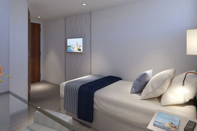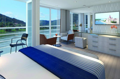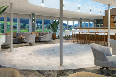 Unser eleganter Neubau im italienischen Stil, komfortable, geräumige Ein- und Zweibettkabinen, großzügige Junior-Suiten mit franz. Balkon, luxuriöse Suiten mit eigenem Balkon. Einladendes Sonnendeck mit Liegestühlen, Sonnensegeln und Bar/Buffet (wetterabhängig), exklusive Tintoretto Lounge und Panorama-Bar mit fantastischem Rundum-Ausblick sowie Glaskuppel und windgeschützter Außenbereich vor der Tintoretto Lounge. Edles Tiepolo Restaurant für kulinarische Genüsse, stilvolle Canaletto Lounge/Restaurant achtern, mondäne Rezeption mit Lobby und ein kleiner, moderner Fitness-Bereich. WLAN (gegen Gebühr). TOP: Fahrstuhl bzw. Treppenlift zu allen Decks